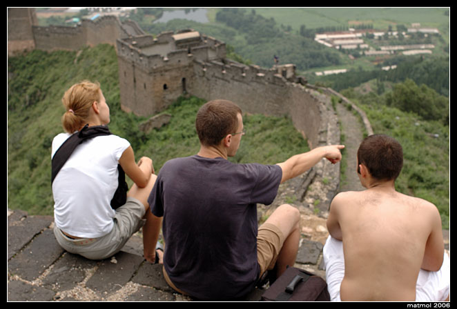 Pojechaliśmy więc kilkanaście kilometrów dalej do Jiao Shan. Tutaj Wielki Mur po raz pierwszy w swoim biegu pnie się na górę i dalej już górami przez tysiące kilometrów.